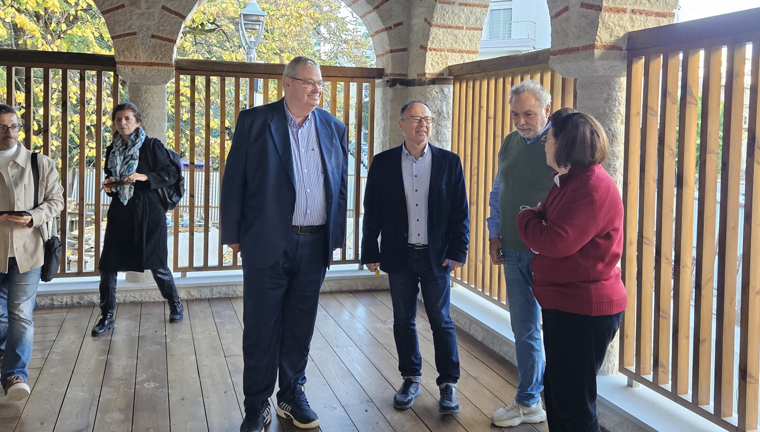 Μετά την επιθεώρηση των εργασιών- οι οποίες βαίνουν προς ολοκλήρωση- ο Περιφερειάρχης αναφέρθηκε στο ιστορικό της μελέτης για την ανήλωση- στερέωση του Τζαμιού και στη συνδρομή της κα Μενδώνη από την περίοδο που υπηρετούσε ως Γενική Γραμματέας στο ίδιο Υπουργείο, όταν του σύστησε την Καθηγήτρια ΕΜΠ κ. Ελευθ. Τσακανίκα και το επιτελείο της, καθώς και στον ανάδοχο κ. Ράπτη, ο οποίος έχει προϊστορία σε έργα-μνημεία πολιτισμού.